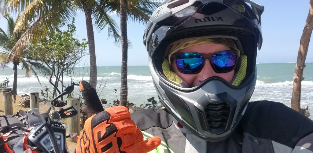 I lucked out. Iván had good-quality gear that fit me, which is a bit of a surprise given my shape and size. Also, his rental operation is a cottage business, not a big-inventory dealership. What’s more, he was a prince and included the gear rental in the fee for the motorcycle. I had been prepared to go by a motorcycle store and buy what he might lack, but he saved me that expense. When I go back to P.R., I will happily rent from him again.