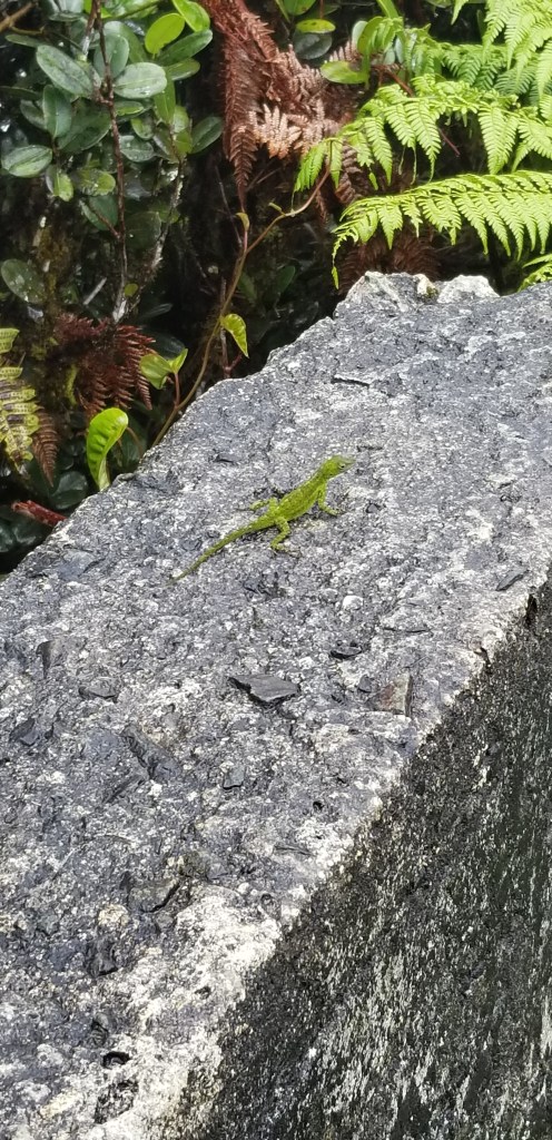 Aside from the lizard on the wall, I saw very little fauna in the national forest, but there was a fair bit of human and vehicle traffic on the roads and trails I used. I did hear some, but their calls were unfamiliar to me. I saw lots of chickens in San Juan, especially in the small neigborhood where I stayed after the kids left. They were more free-range-y than I would have expected. Along the more rural portions of the ride, I saw lots of animals: dogs, cow, horses, donkeys, more chickens, In a couple places on La Ruta, I saw mongooses. They had been introduced from India by planters as a control for snakes in the sugar cane plantations and vastly expanded their range from there. And on the southern coastal roads, big iguanas were all over, many, sadly, as roadkill (like prairie dogs in May in Colorado). I don’t recall seeing many birds, nor the frogs for which the island is famous. I certainly did hear the latter, though.