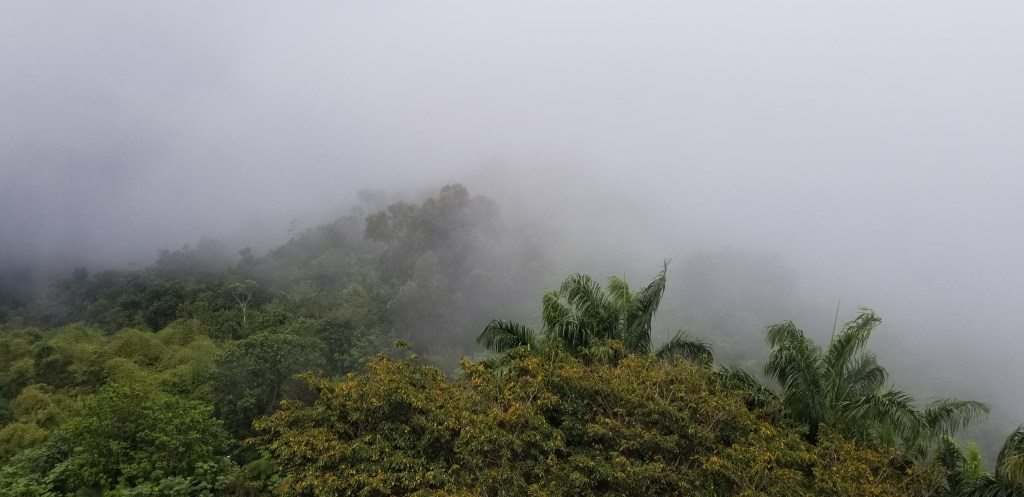 COVID gave me top billing on the Hasslemania wrestling card. By the time I went to bed that night in Punta Santiago, I’d had the first sign that I was sick. I didn’t feel better after my sunrise stroll on the beach. (I noted superstitiously that it was the Ides of March.) Before checking out I informed the host and apologized, so that no one would inadvertently catch whatever I had when cleaning the room. I made sure that all my trash was in a sealed bag, and all the linens were stripped and in a single pile. I opened the windows wide, left a cash gratuity and a warm review. I won’t describe much of the rest of my ride, except to say that I did stop at El Yunque National Forest, knowing that I would not go inside any structures (yes, I peed in the forest rather than in an enclosed toilet). Much of El Yunque’s trail system was destroyed by Maria, and only a few limited sections were open. I decided I’d do the open portions of El Yunque Peak Trail to Los Picachos Peak, about 4km with an elevation gain of about 400 meters. The sprinkles, and then the clouds of the eponymous cloud forest had a wonderfully cooling feeling as I climbed. Until they didn’t. The COVID fever came on. Soon it was time to get back on the motorcycle. I eliminated my other planned stops, headed back to my rental in San Juan, and subjected more people to my hassles.