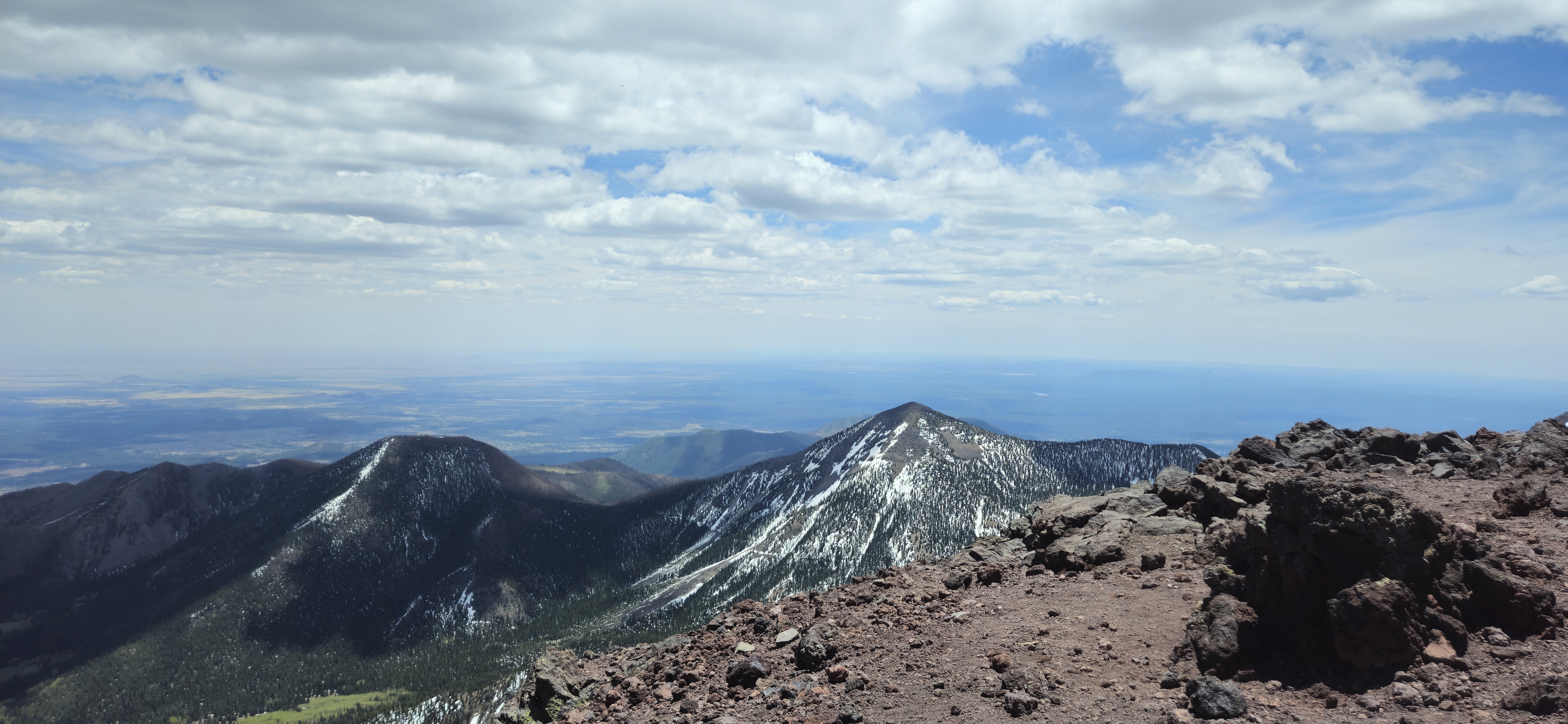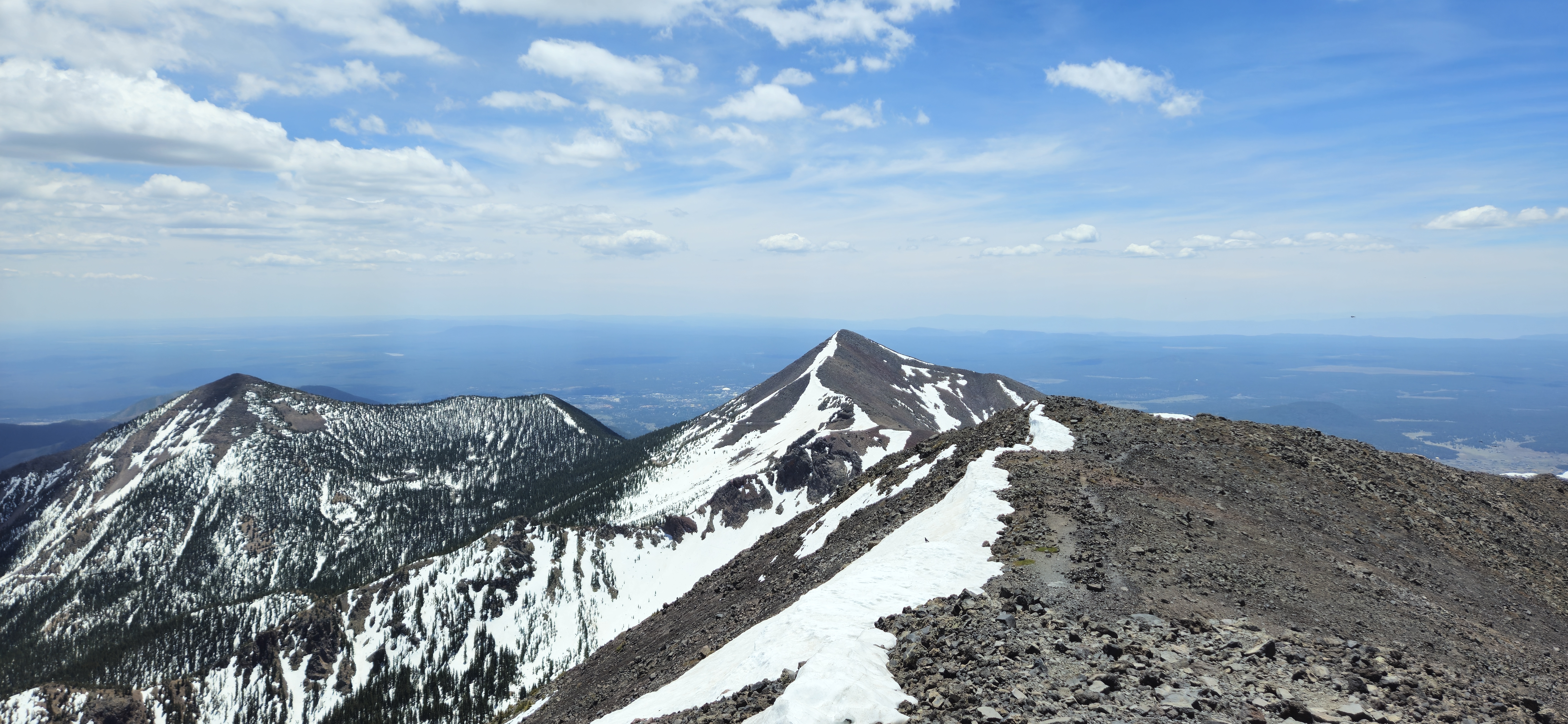 The various peaks remaining from the prior volcano include the six highest points in Arizona, each more than eleven thousand feet tall. The tallest three (in ascending order) are: