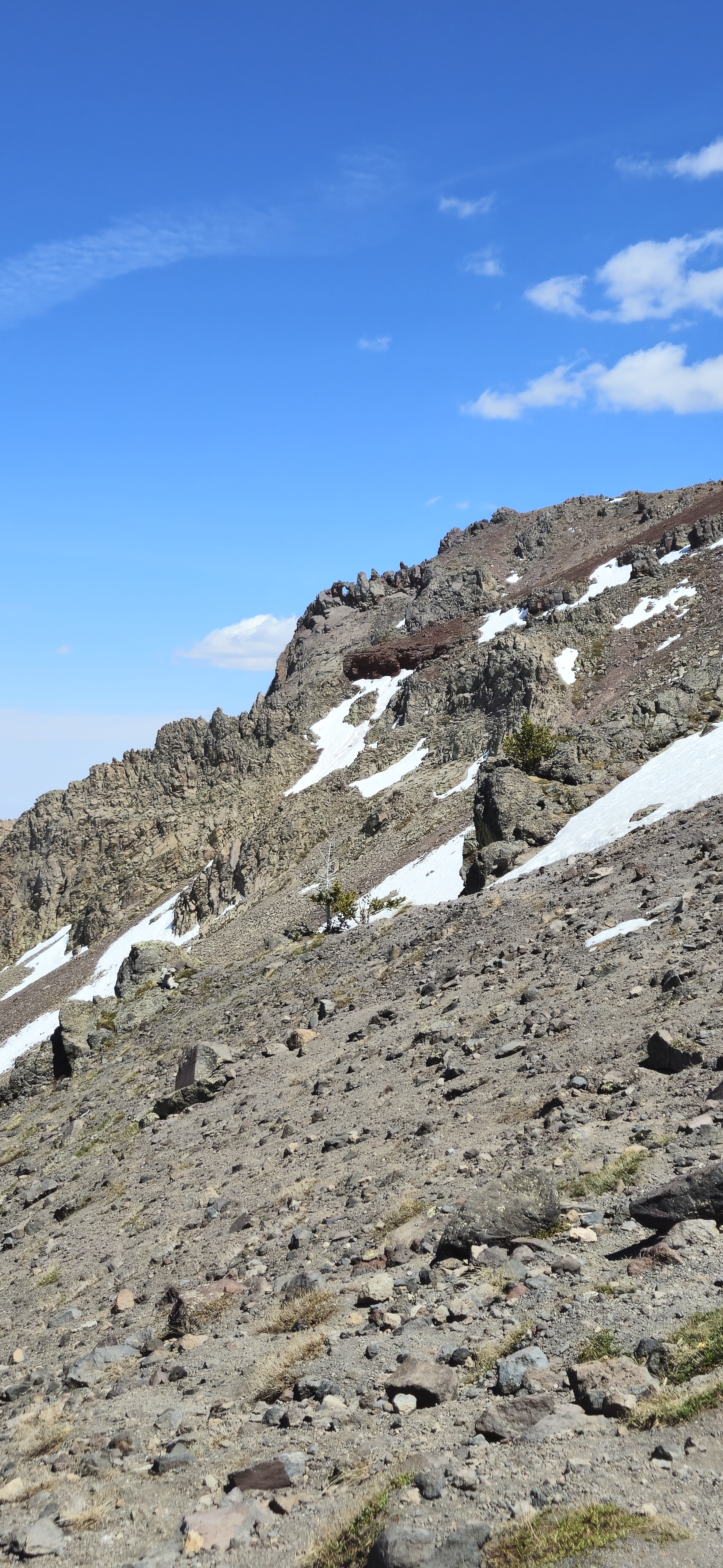 Back to my trip, the sustained peek I had at these mountains as I drove past them stuck in my mind. At intervals on the rest of my drive to California and idle moments there, I read up on the mountains, particularly the tallest peak, Humphrey’s. And the maturation of the wheat in Kansas slowed down enough for me to plan on making Humphrey’s my “sneak peak,” my unanticipated first summit of 2024. Humphrey’s has a pretty well-defined trail up it (“strenuous”, roughly 10 miles, with a 3,420-ft. gain in elevation, according to the Forest Service). Trip reports on hiking apps relayed that much of the winter’s snow had melted, leaving fields which were passable, especially if one wore microspikes for additional traction.